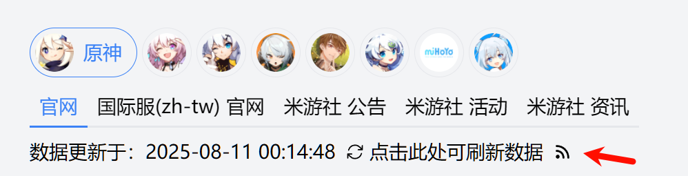 点击更新时间右侧的图标可打开对应新闻的 RSS订阅链接,将链接粘贴进阅读软件即可订阅,暂定返回最新 50 条数据