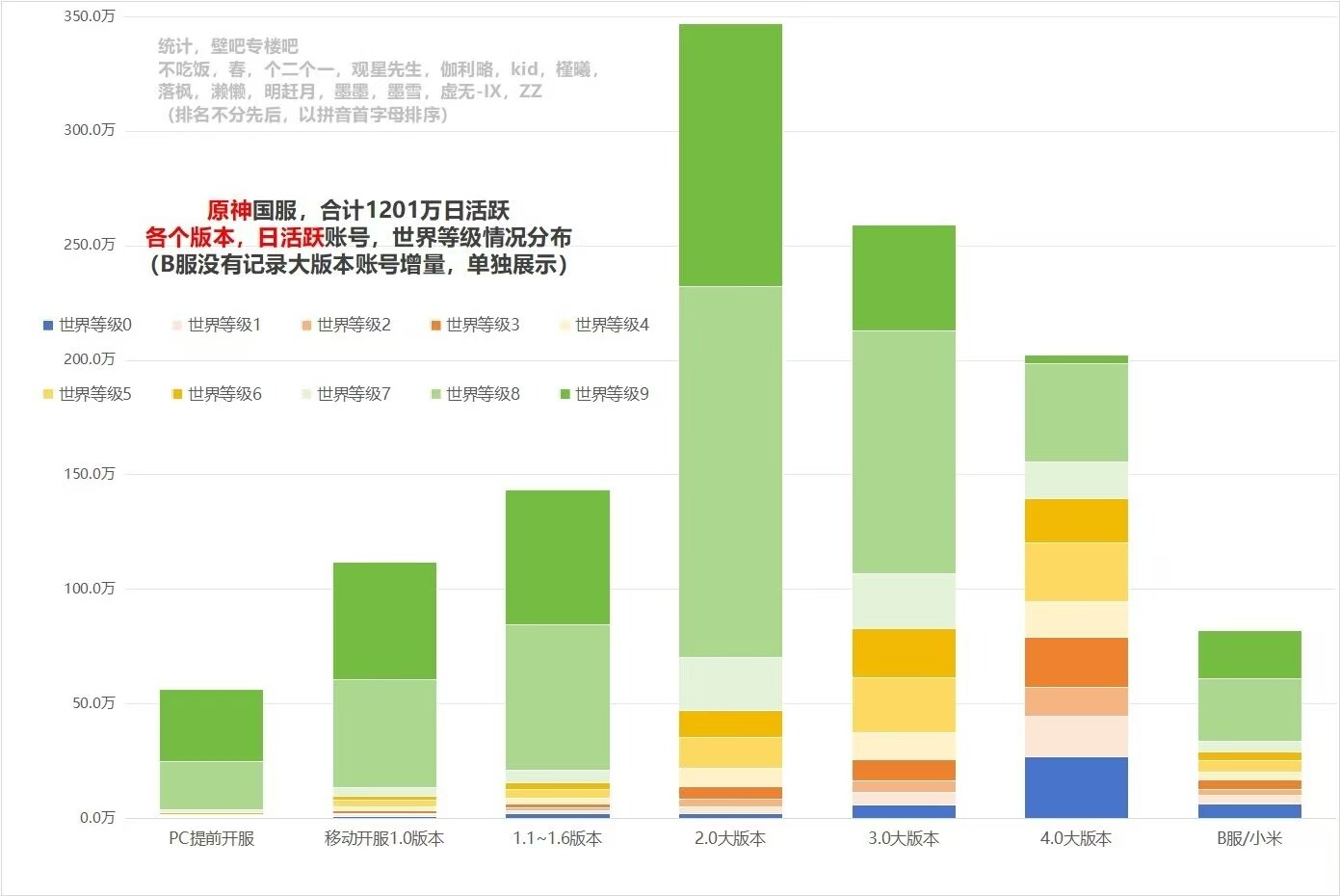 ① 5.0版本日活1201万(国服),其中9级世界等级的玩家数为220万