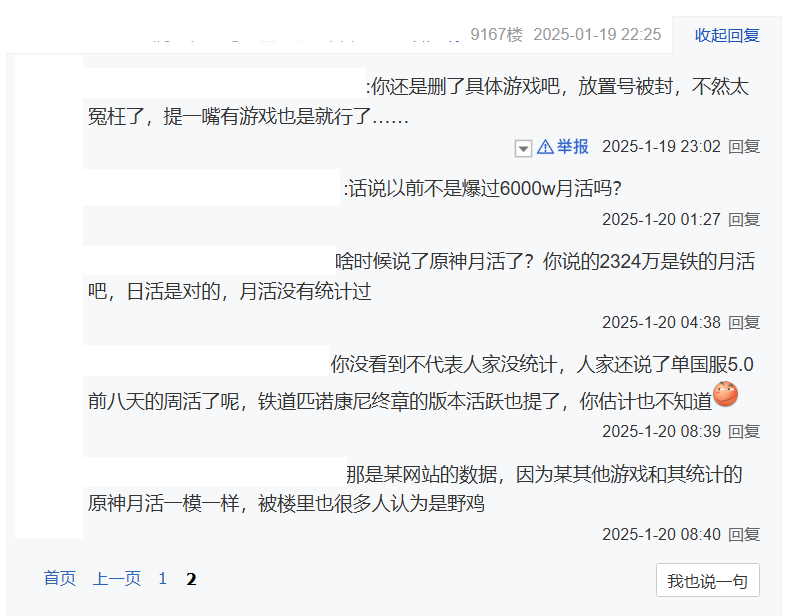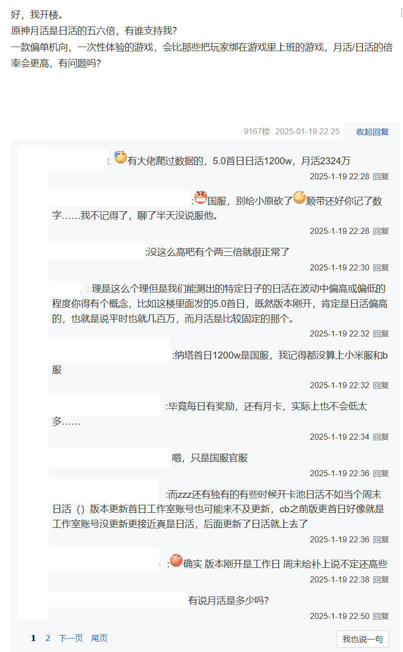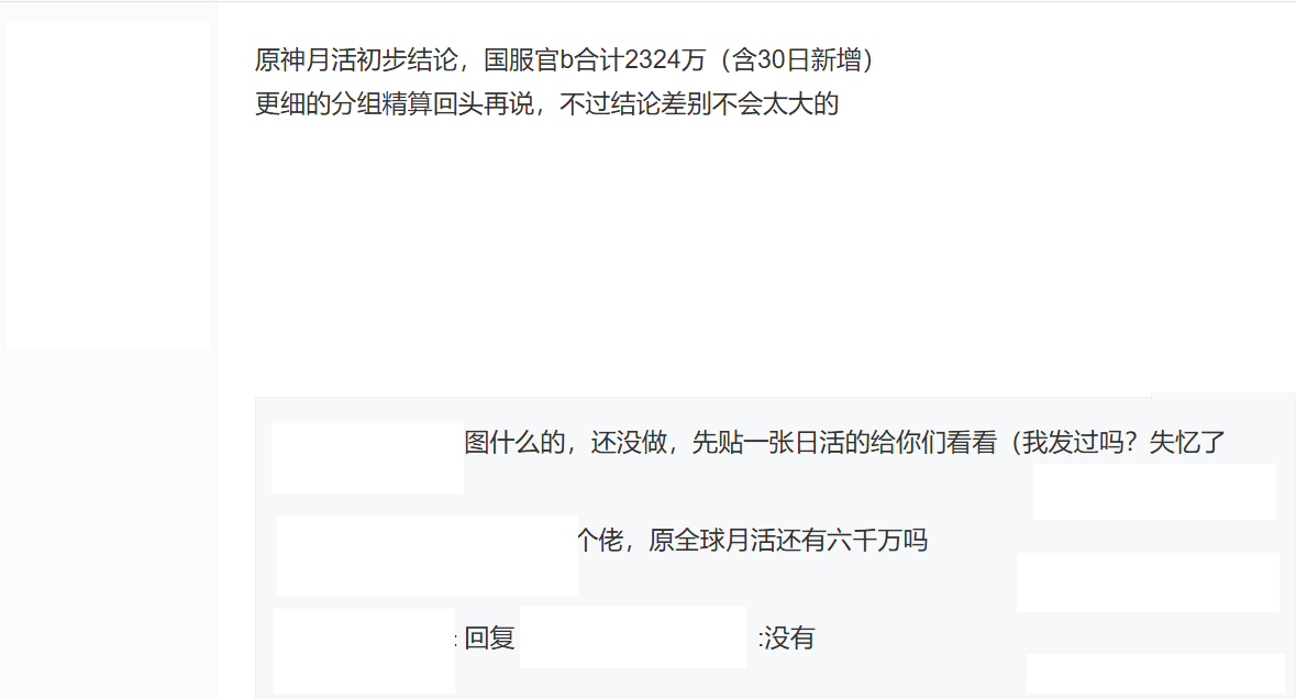 而且他还回复我崩铁在匹星版本末期月活也突破了2200万此事不知真假。在我印象里这些数据我都没见过,所以向各位楼友求证