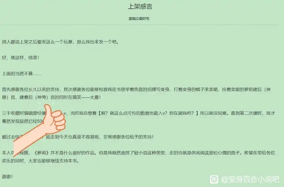 这个事情还是有证据留存的,当年都是打过来的,虽然我现在佛了,只想自己好好生生看点小说,但还是把证据丢给你,第一他的书标了萝莉百合的标,且在认同不少的情况下不作处理并宣传过,其次他自己在上架感言中说的原话。