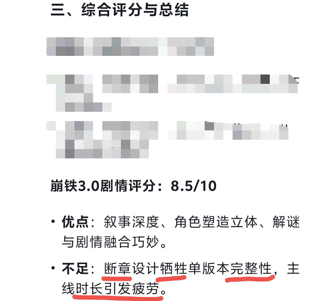 也有看过质疑铁除cg外的角色演出太少,站桩对话太多角色动作少,这我就真不懂了,我想不通,所以我也保持疑问为啥