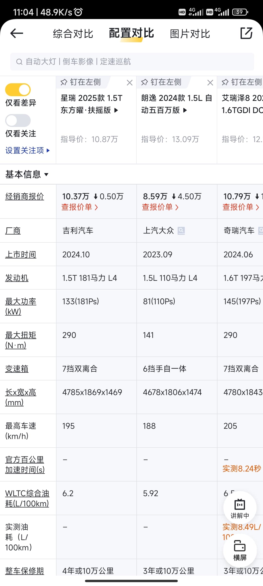 看了圈没有靠谱能讨论的地步,只好来求助坛友给点建议了。朗逸、星瑞、艾瑞泽8哪个比较好