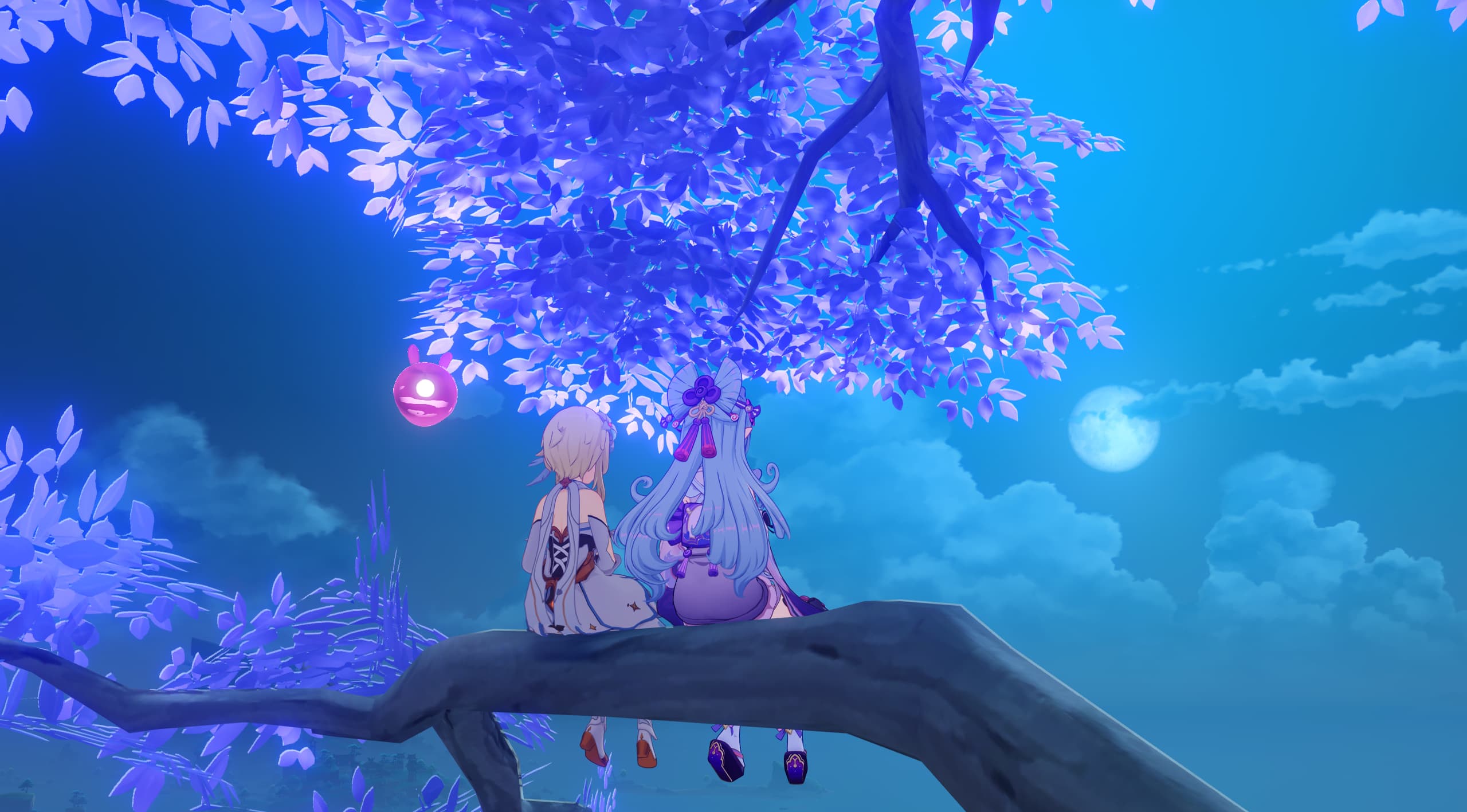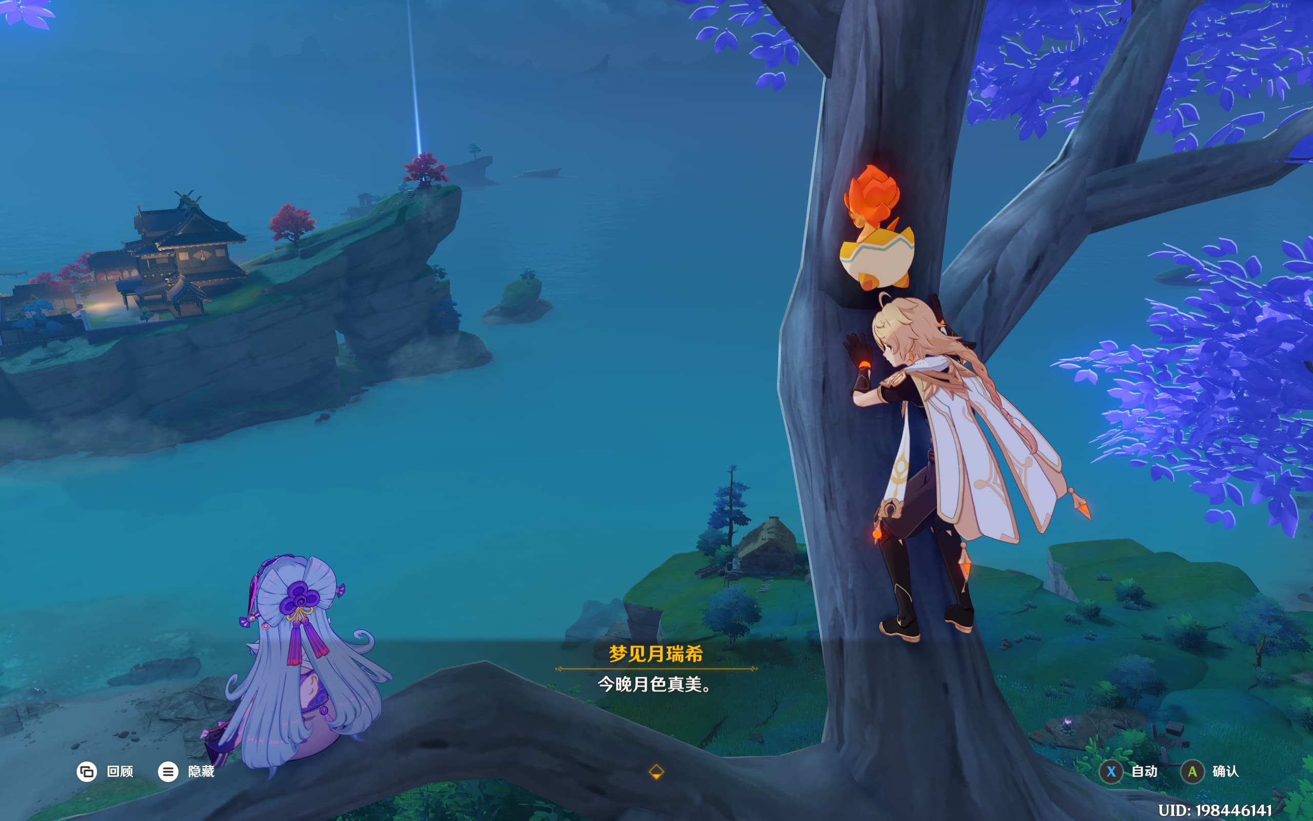 上树了,ó,看月亮,是不是要玩日本月亮真美的梗,好吧没有,还没那么直球,派蒙你干嘛呀
